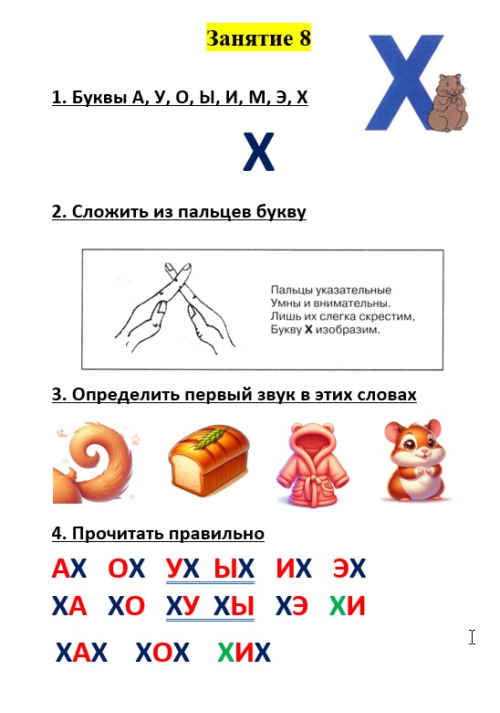 - • Формат: прописать букву, зачеркнуть лишнее, найти предмет, раскрасить, прочитать родителю.